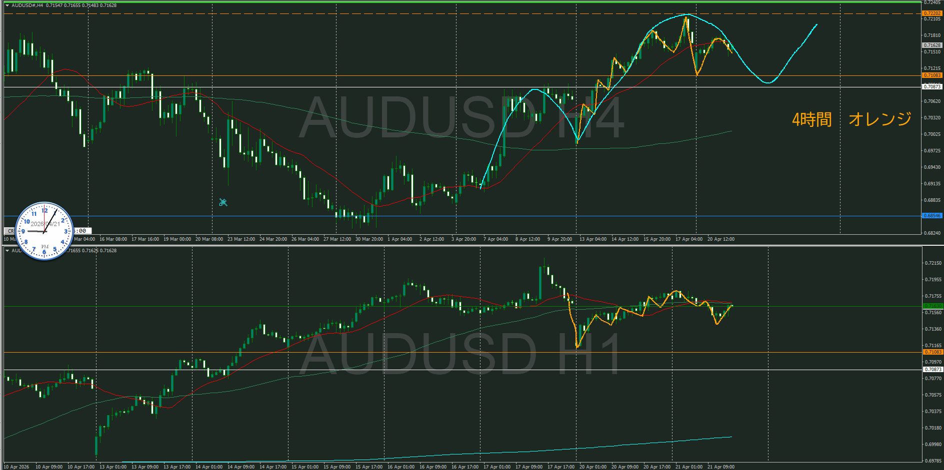 4時間が戻し過ぎてMAでも売り抑えられているところ