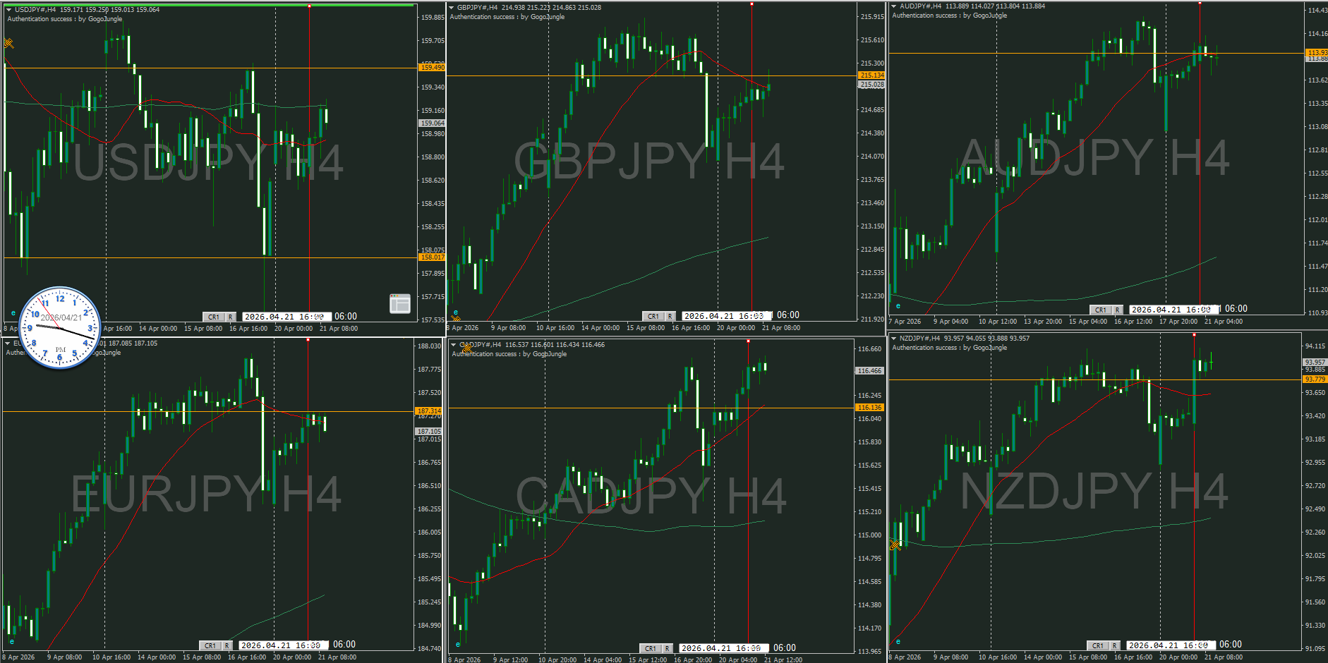 4時間MAを視るとスイスフラン円だけがMAを超えている