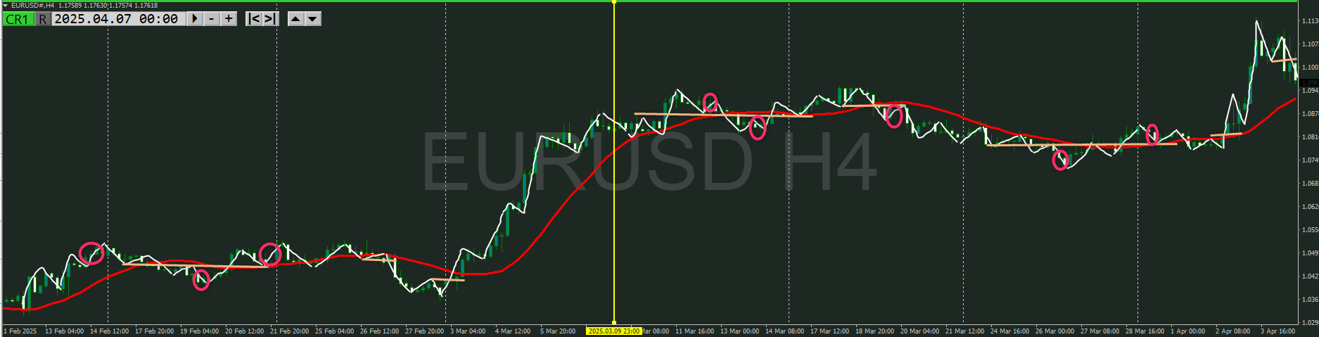 【4時間】方向上 トレンド転換シグナルが出て上昇の波の途中
