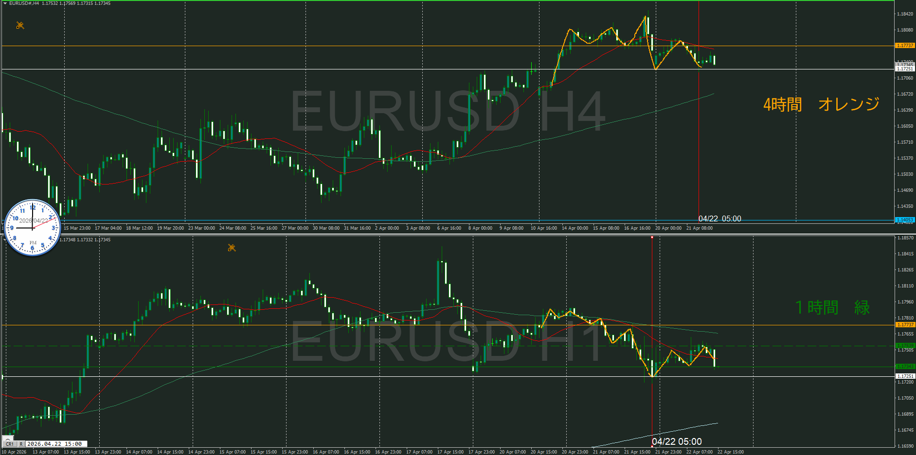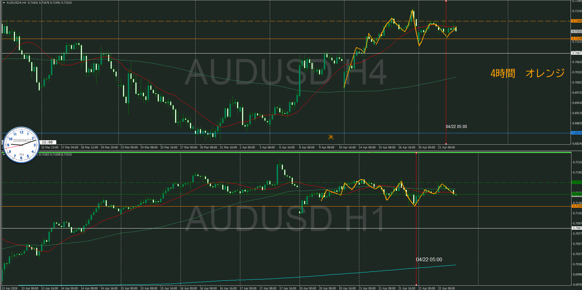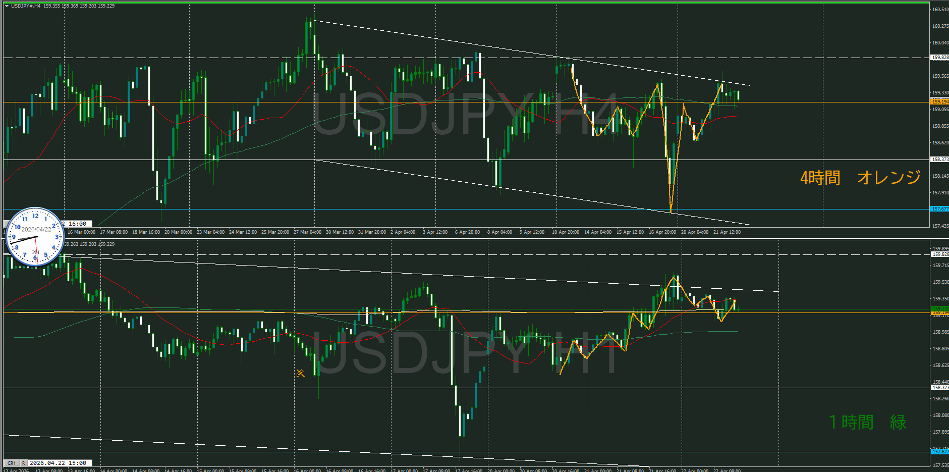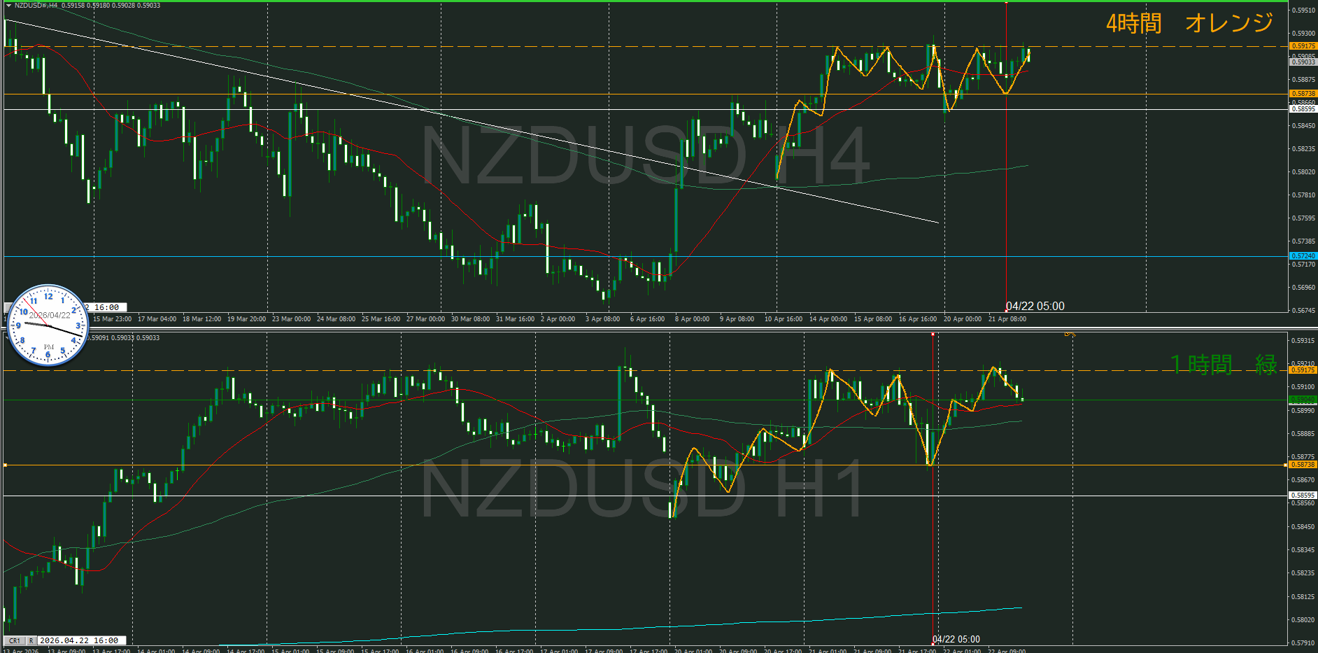 4・1時間同時抜けなのでセオリ的には1時間の調整から再度上昇を狙うところ