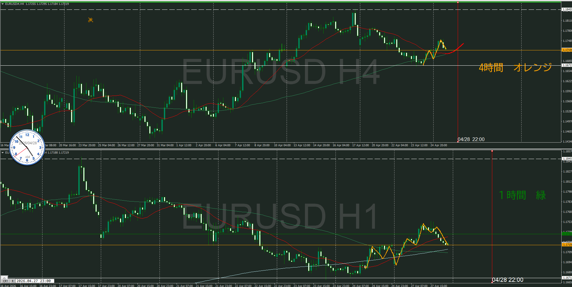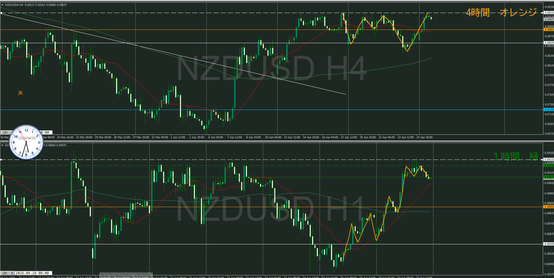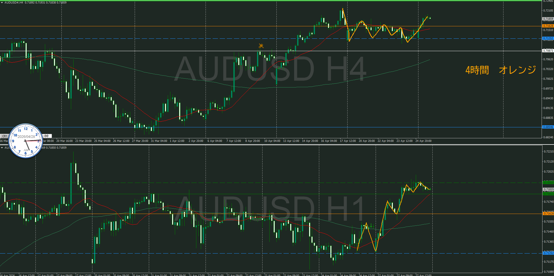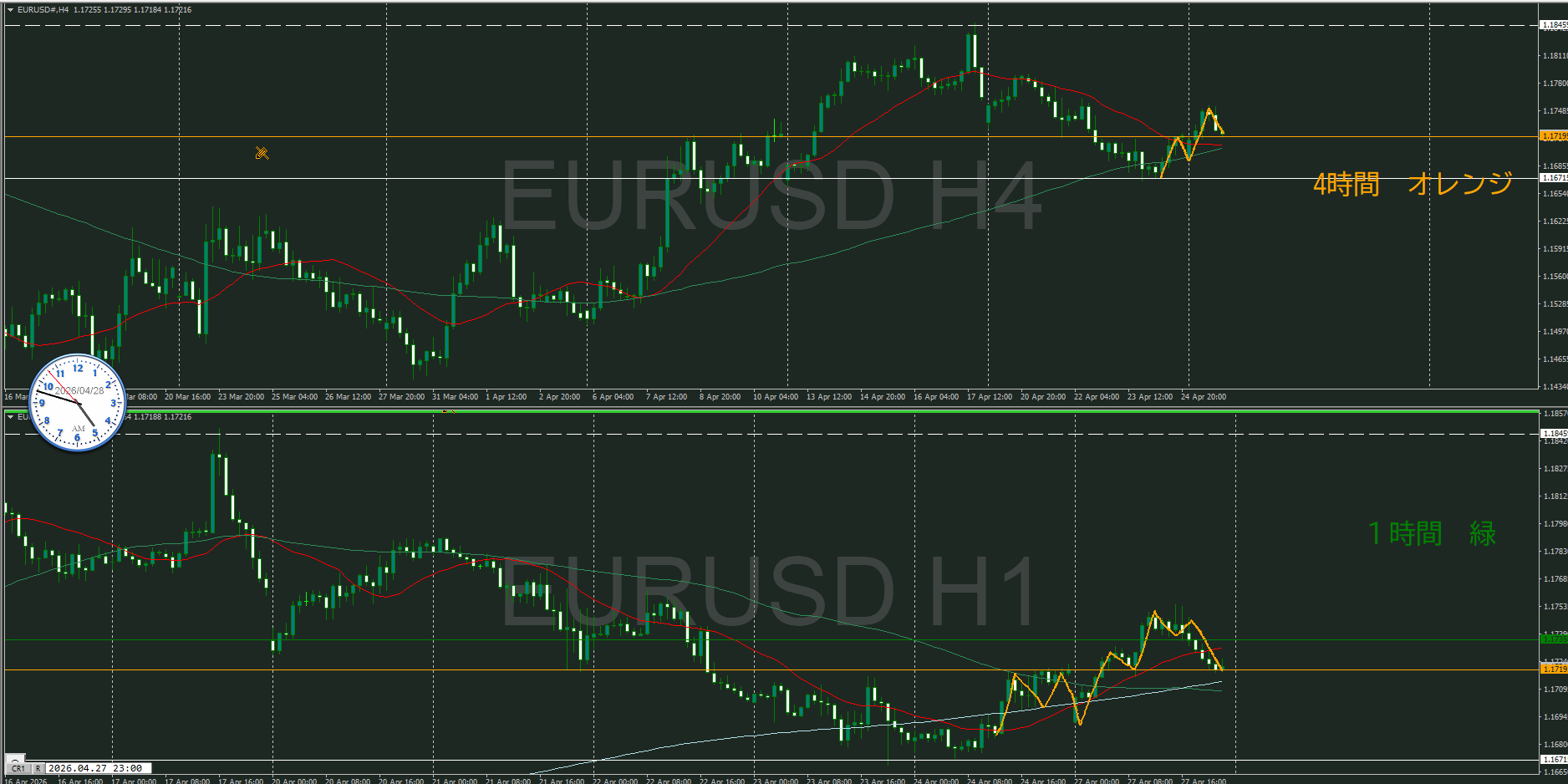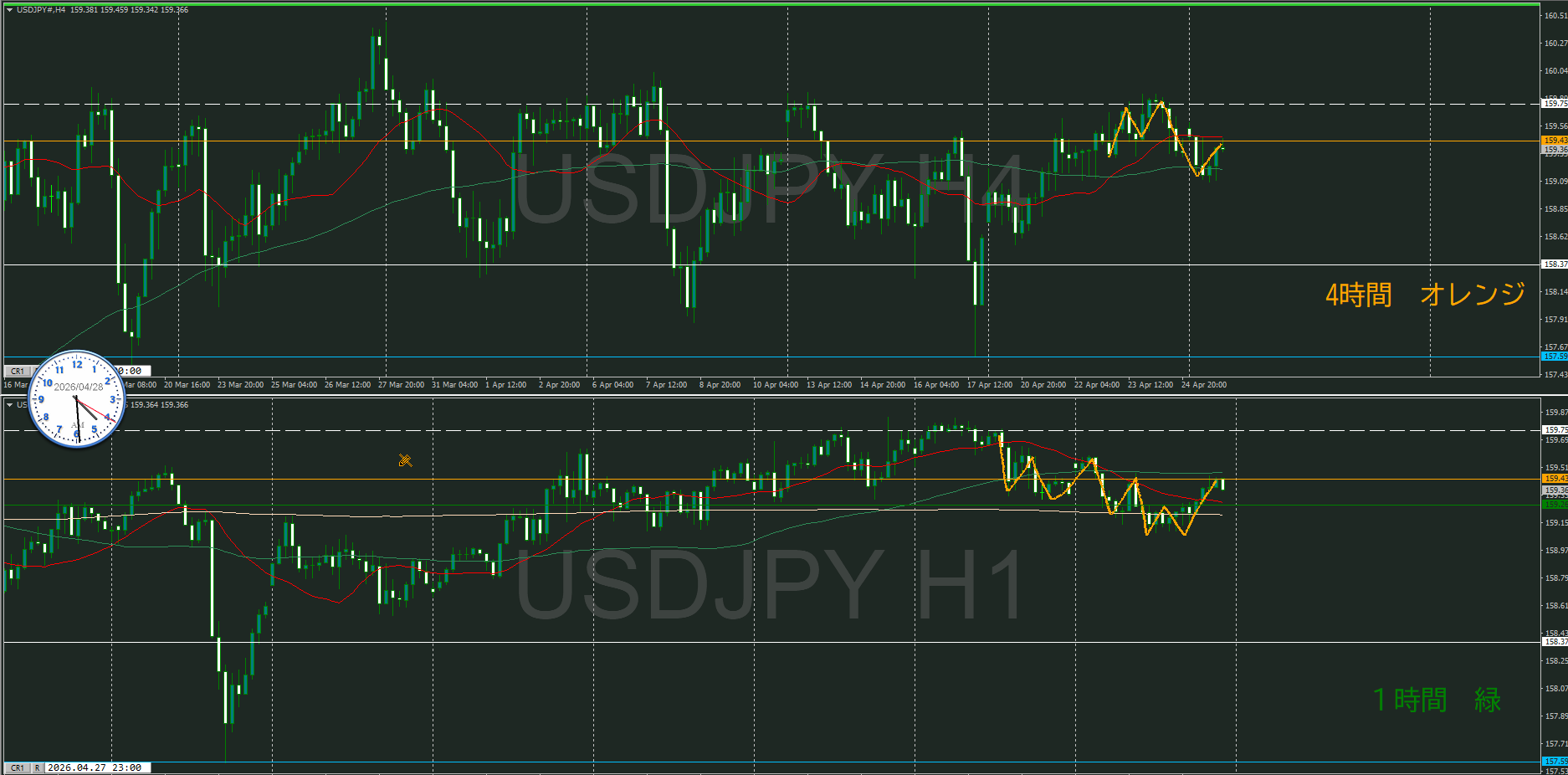 4時間が押してきたら、押し目買い勢力が現われる可能性あり