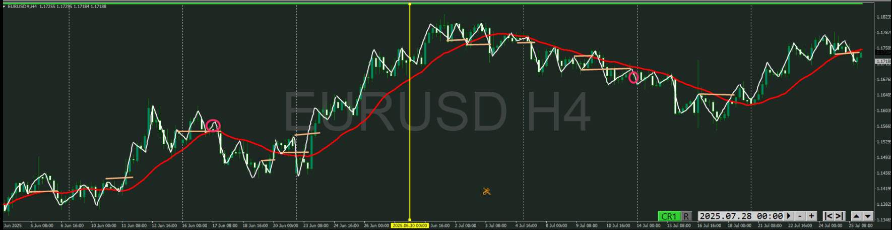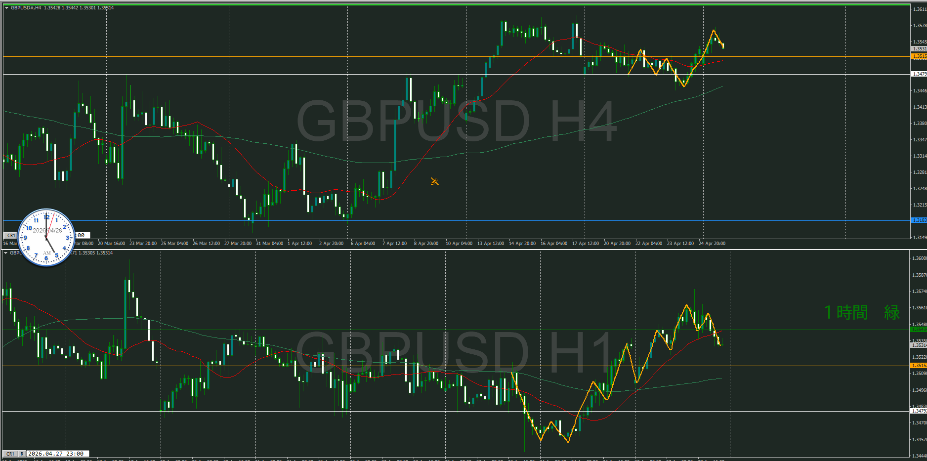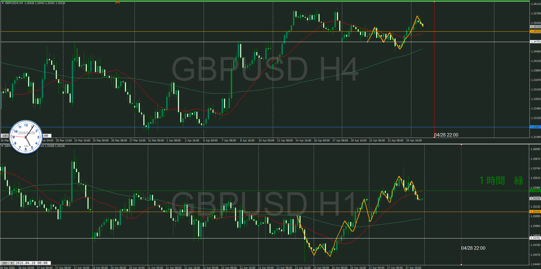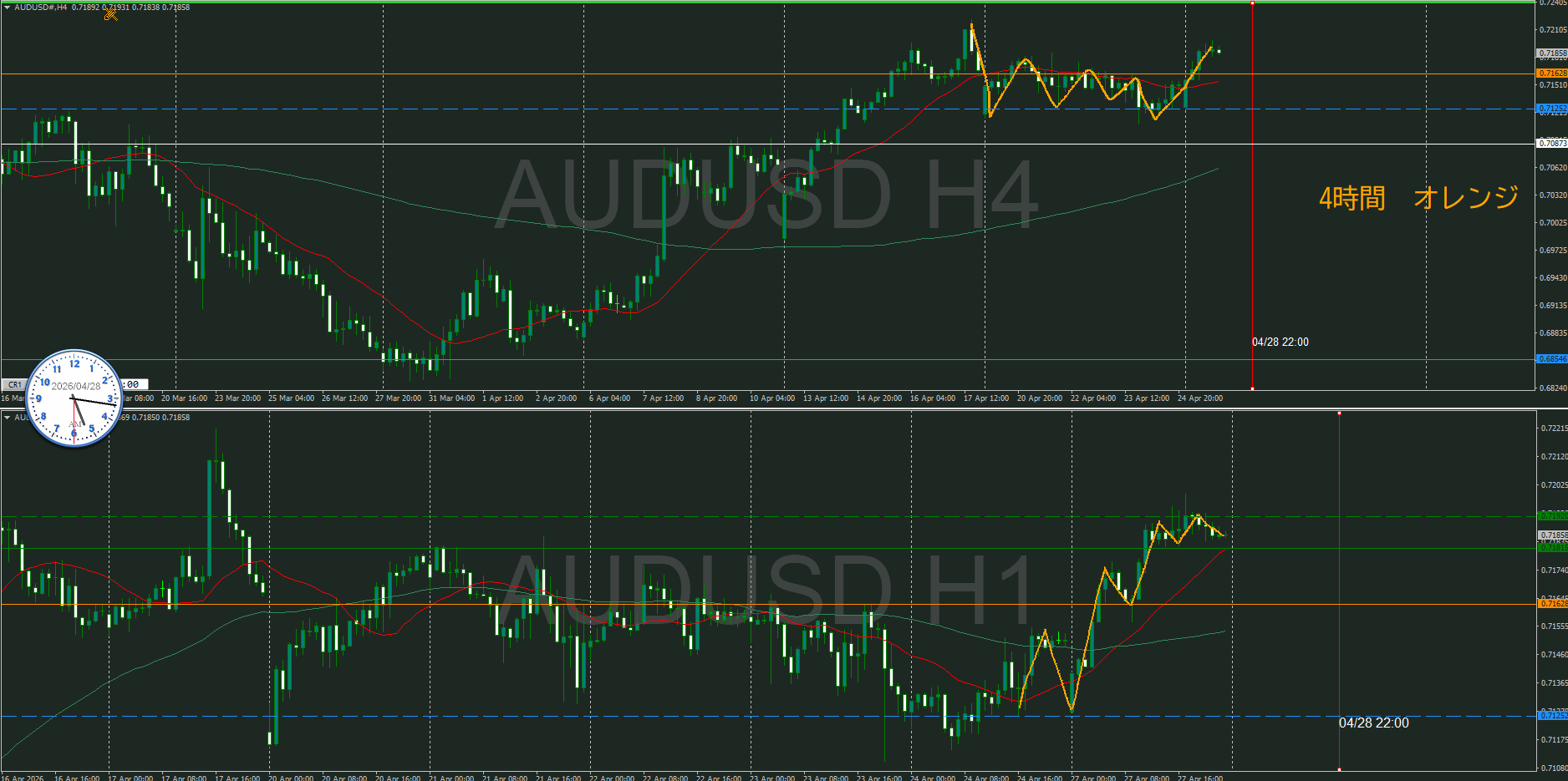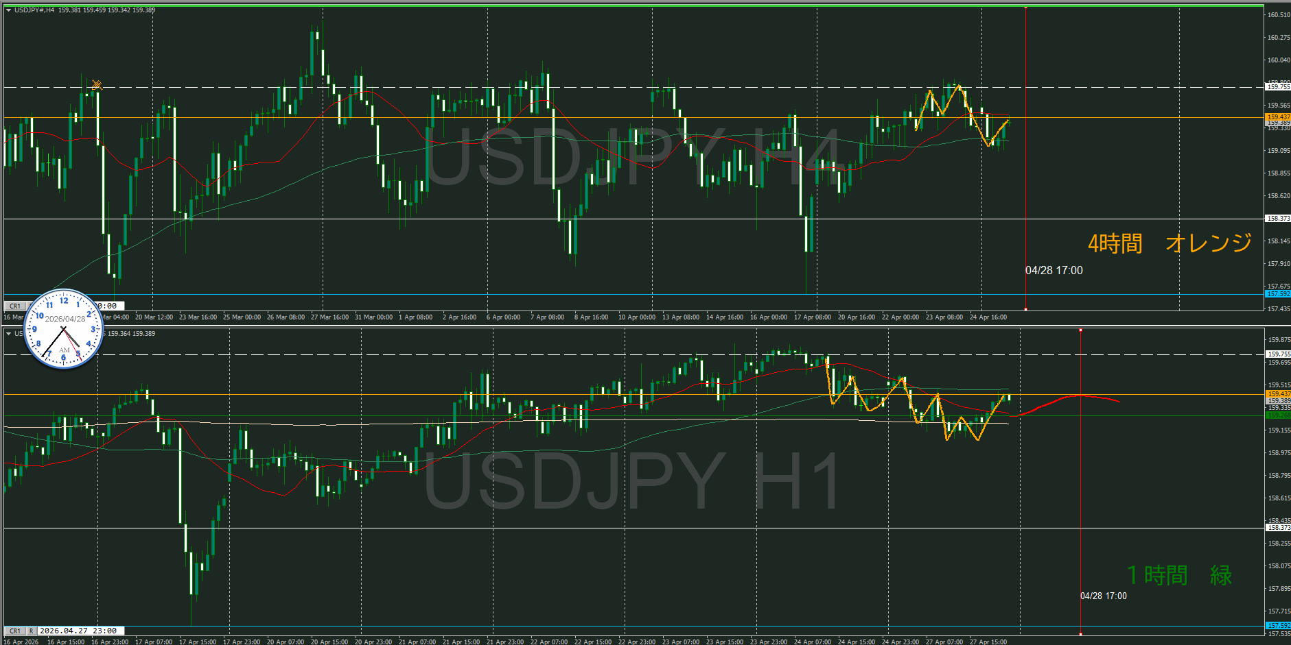 4時間が押してきたら、押し目買い勢力が現われる可能性あり