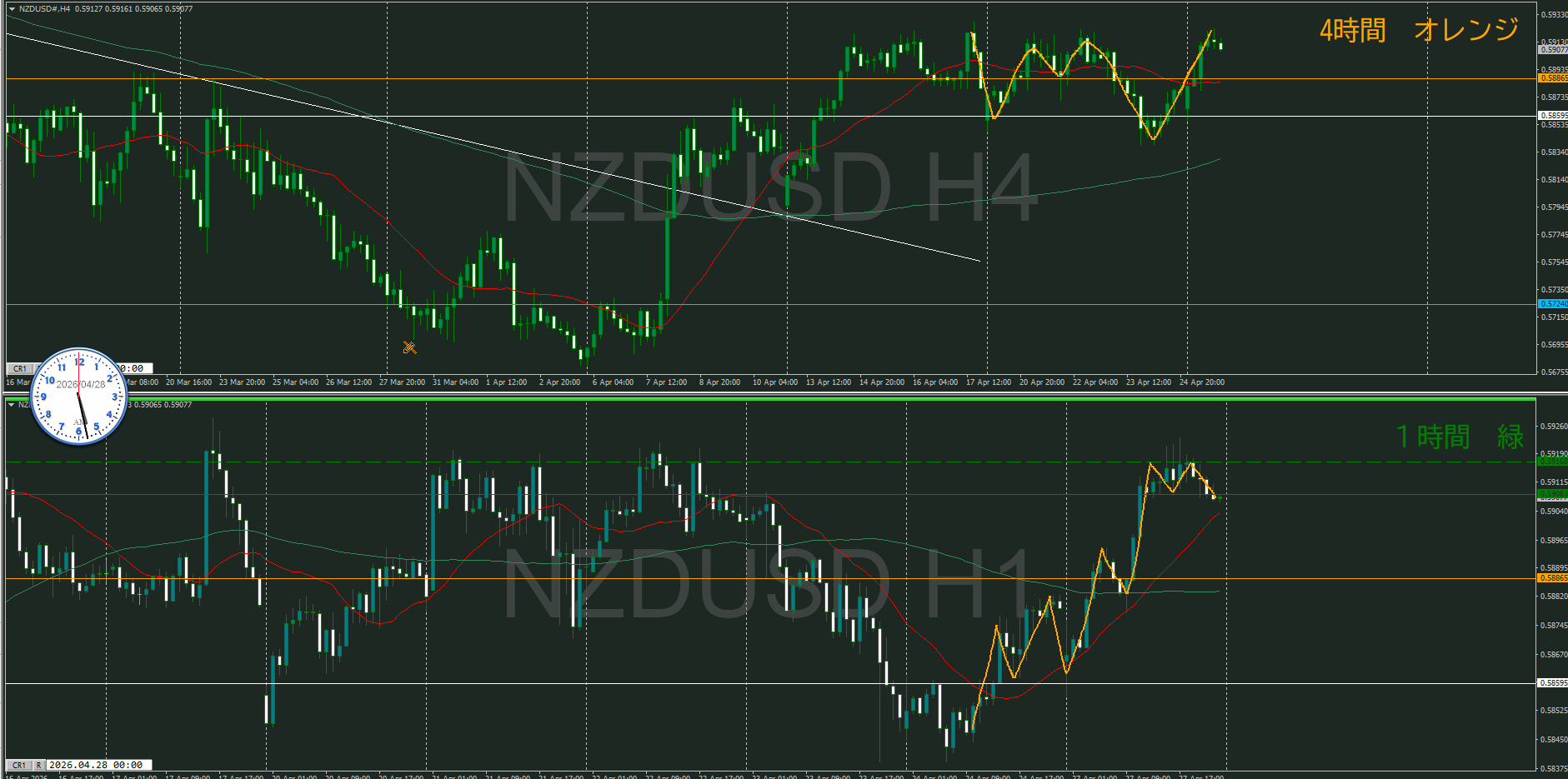 【4時間】方向上 押している波が押し目買いエリアに到達